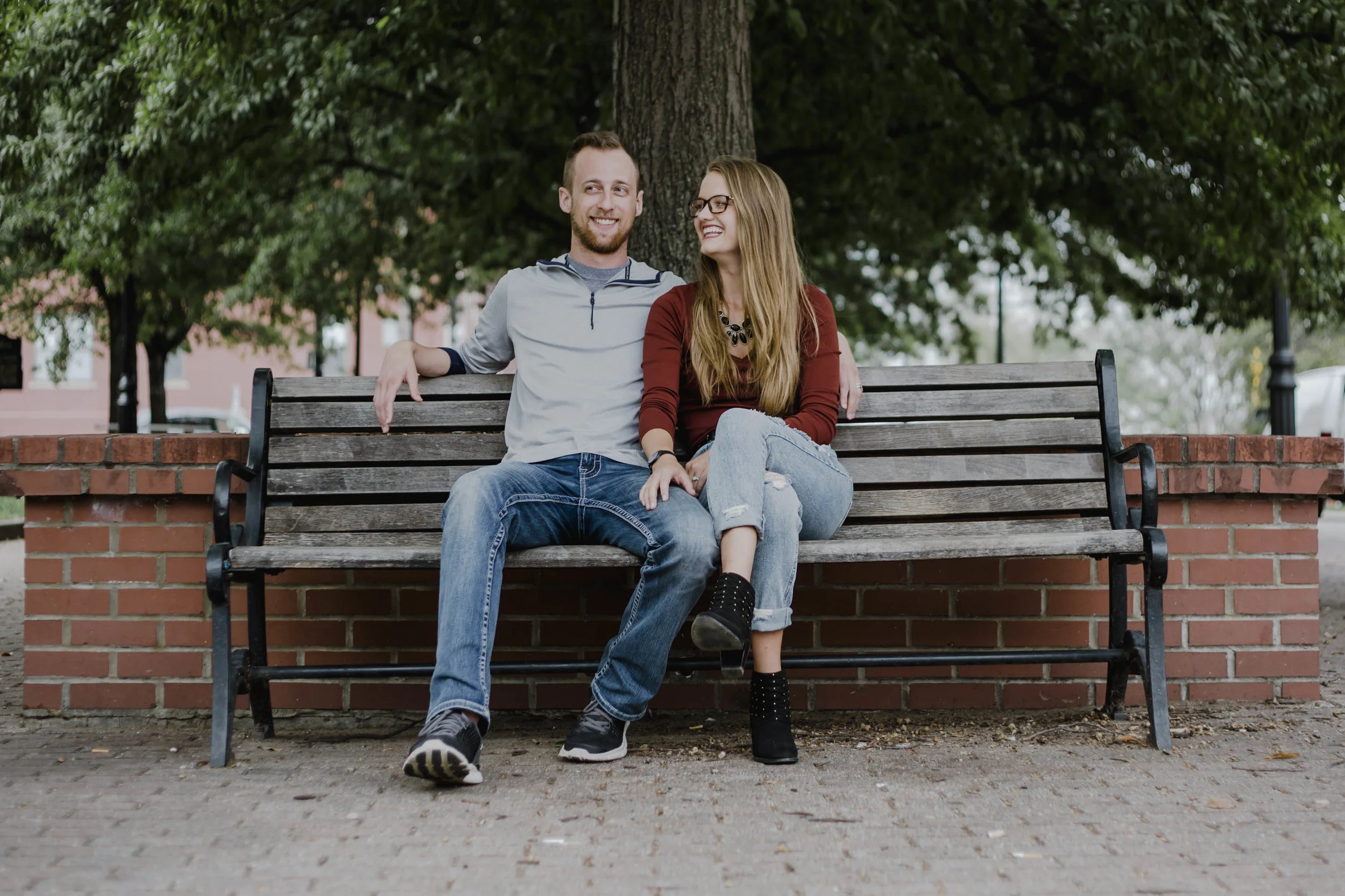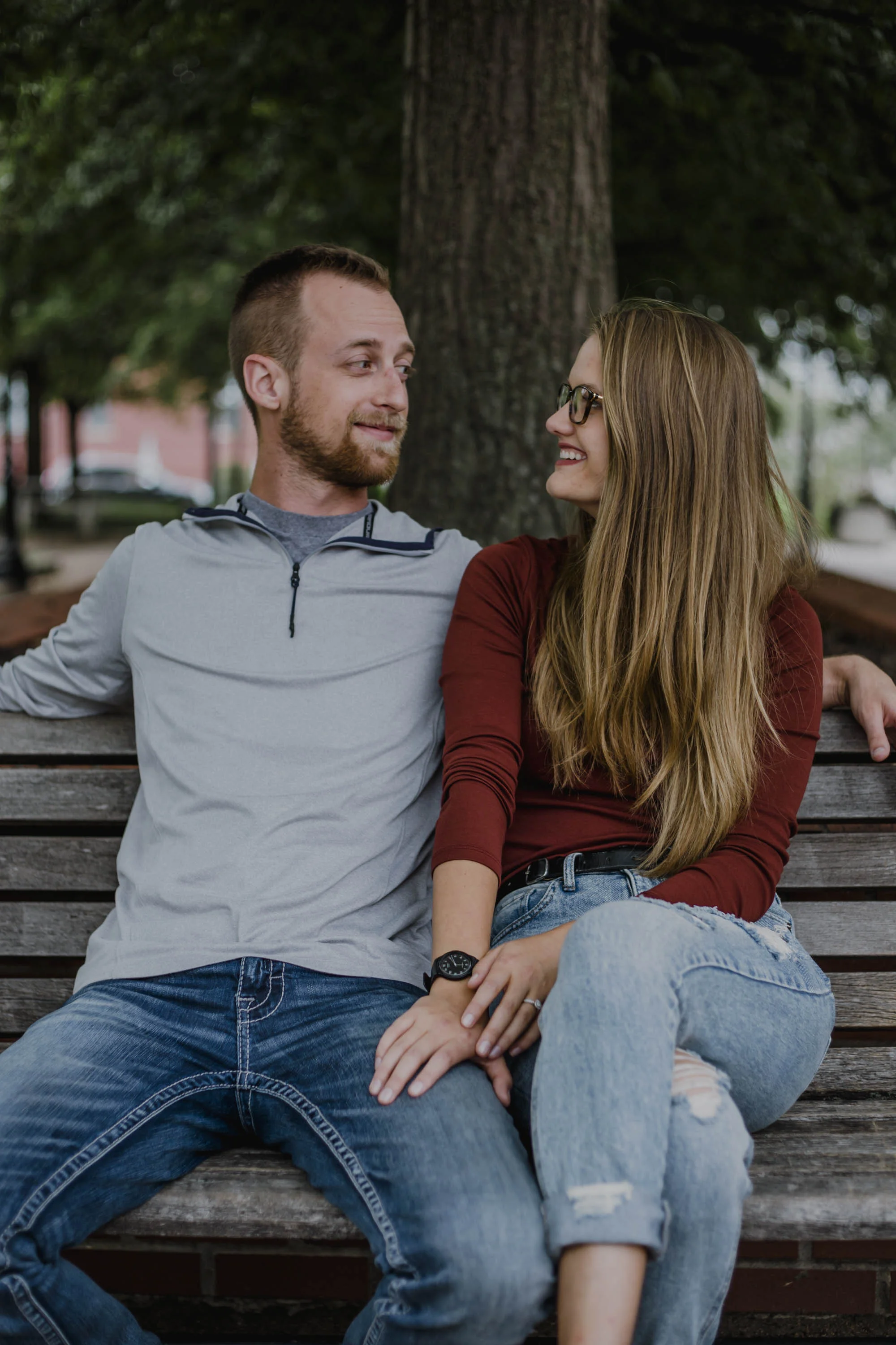 One of the best parts of the hour was when I sat Emily and Ryan on a park bench and asked them to look at each other. At first, I asked them to just have a conversation about what they were doing with the rest of their day, but then I asked them about how they met. These stories are my favorite. I am a sucker for a good love story (yes, hopeless romantic right here). Everyone’s is different and I love asking my couples this question. The greatest part about this is that during the story-telling, I get to see them remember the sweet moments, the beginning. I watch them as they recall their first date and their first kiss. The way they look at each other as they remember is what I love to capture. That’s the key, you guys. That’s where I get those genuine smiles and I am so happy to have been able to hear their story.